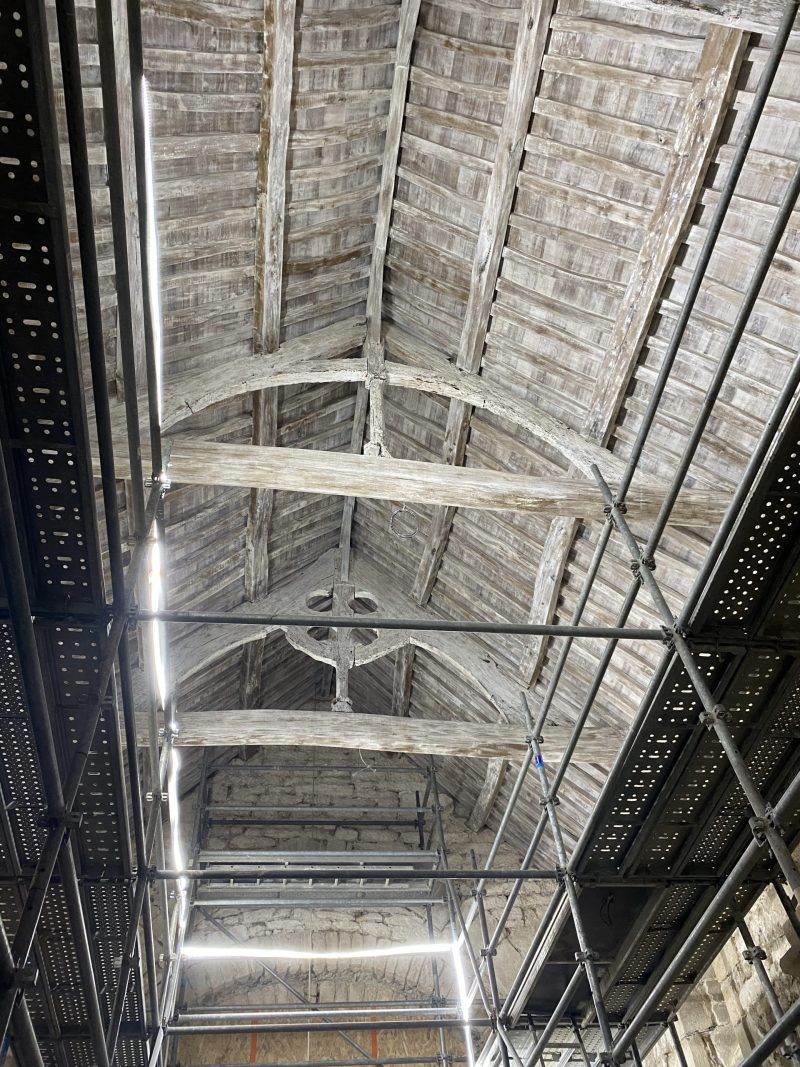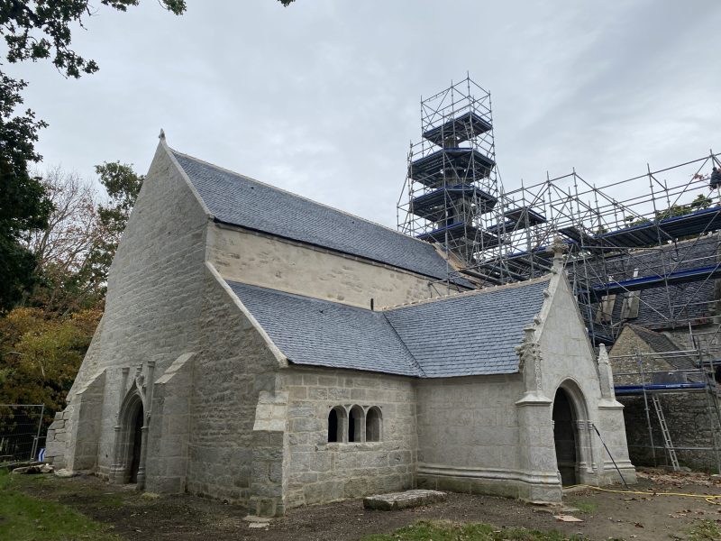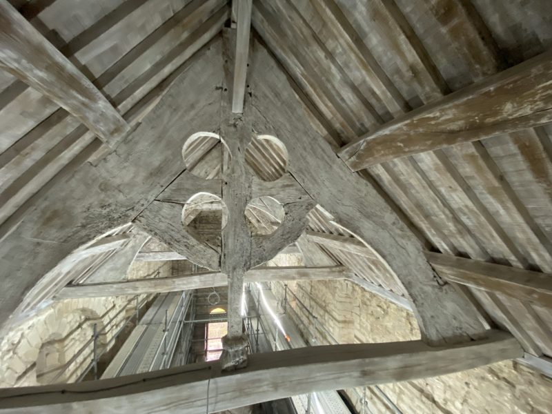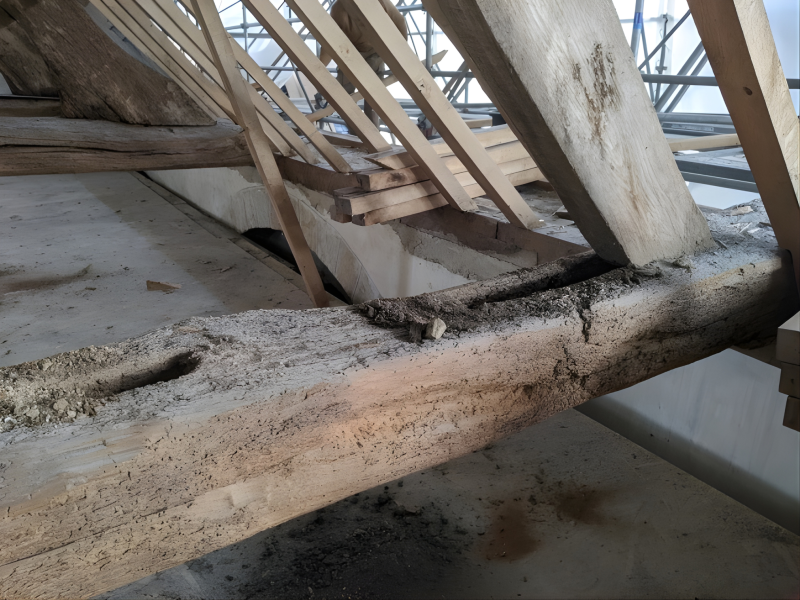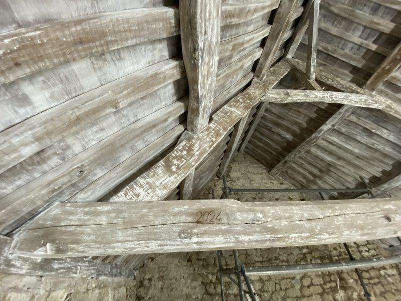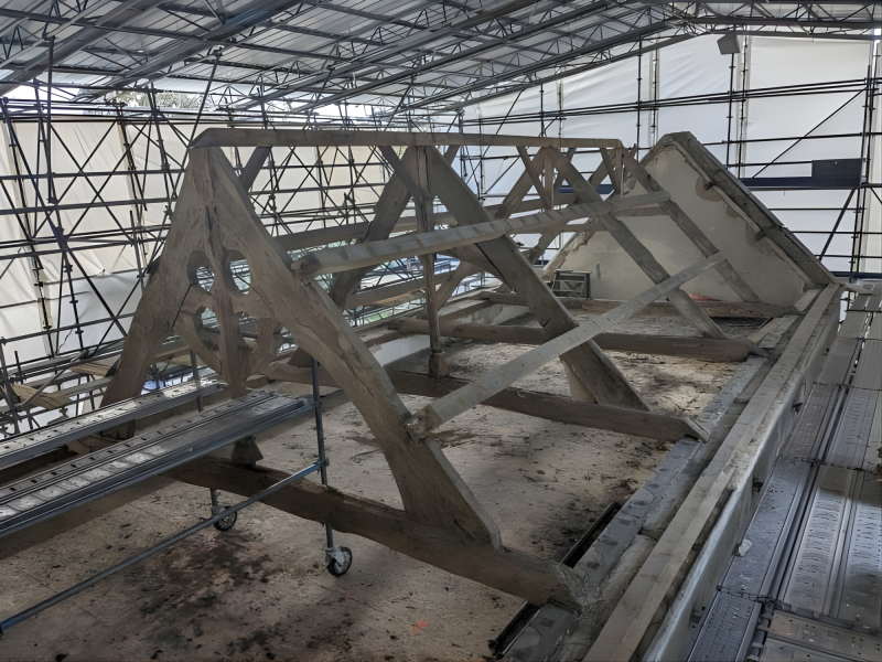 Greffe des entraits fermes de la charpente armoricaine datant du XIIe siècle.