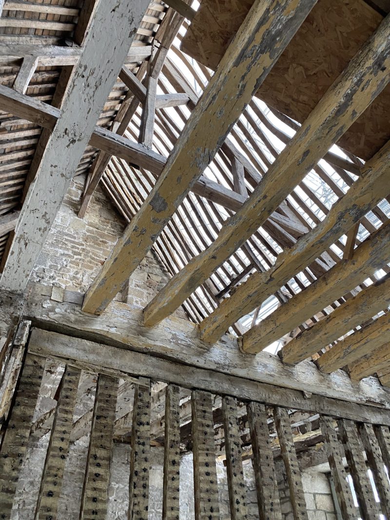 - Conception et dimensionnement du renforcement des poutres porteuses en bois des planchers (350 x 350 mm) par l’ajout de lamibois de hêtre, collé structurellement, afin d’augmenter leur inertie statique.